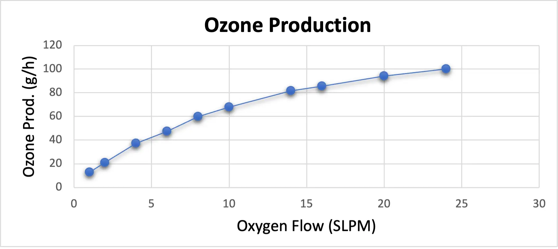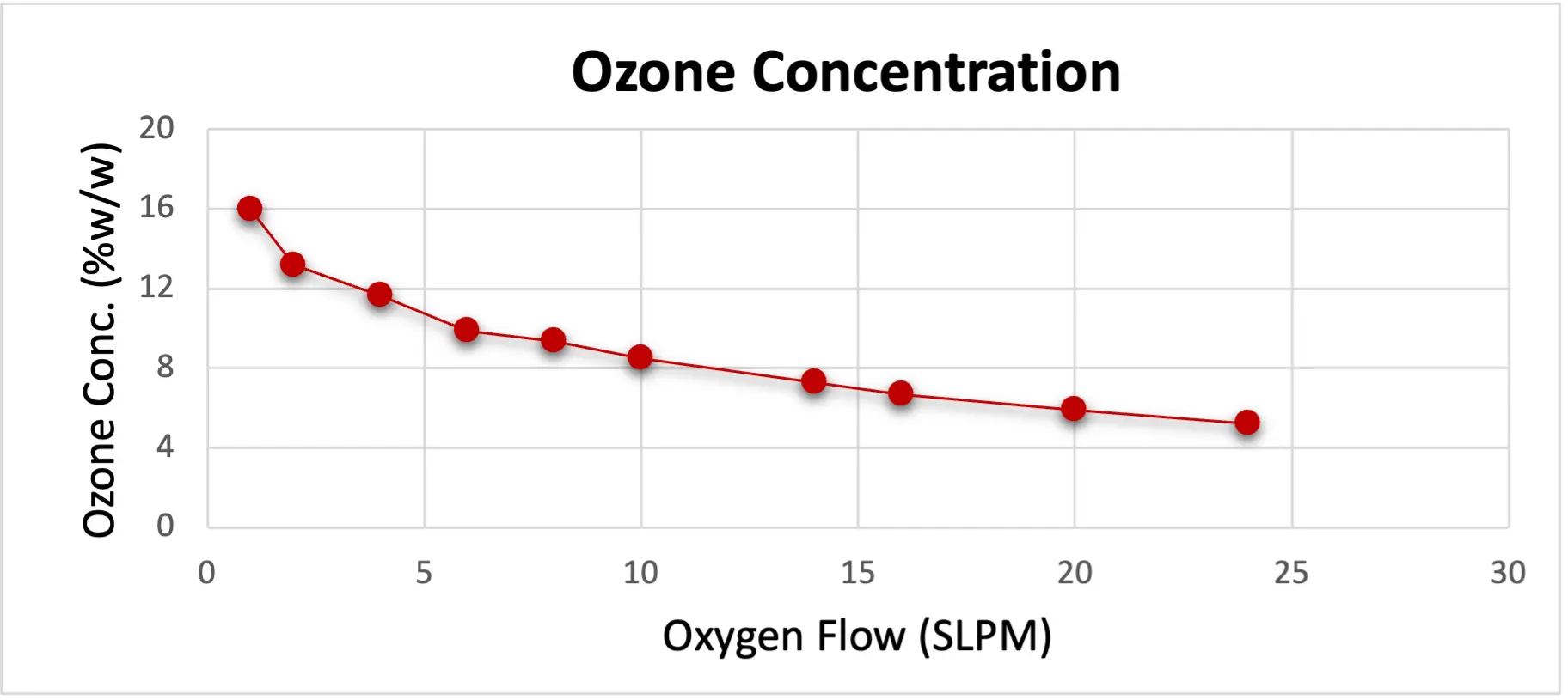 Oxygen Flow (slpm) Ozone Conc. (%w/w) Ozone Prod. (g/h)