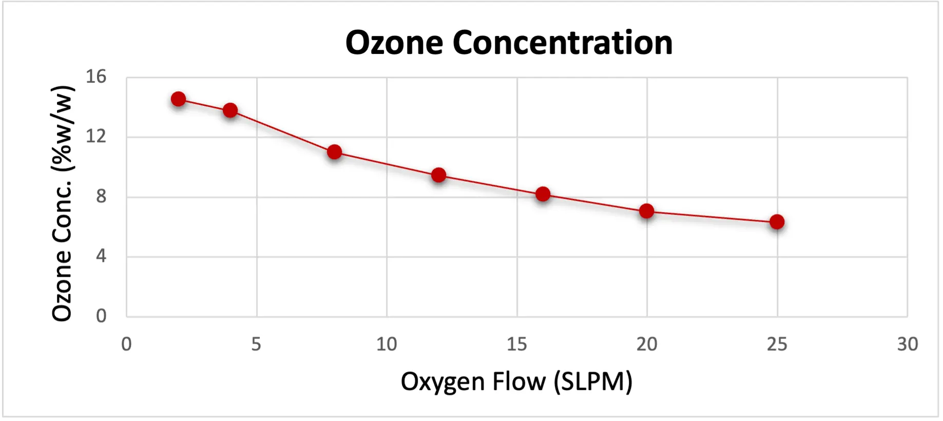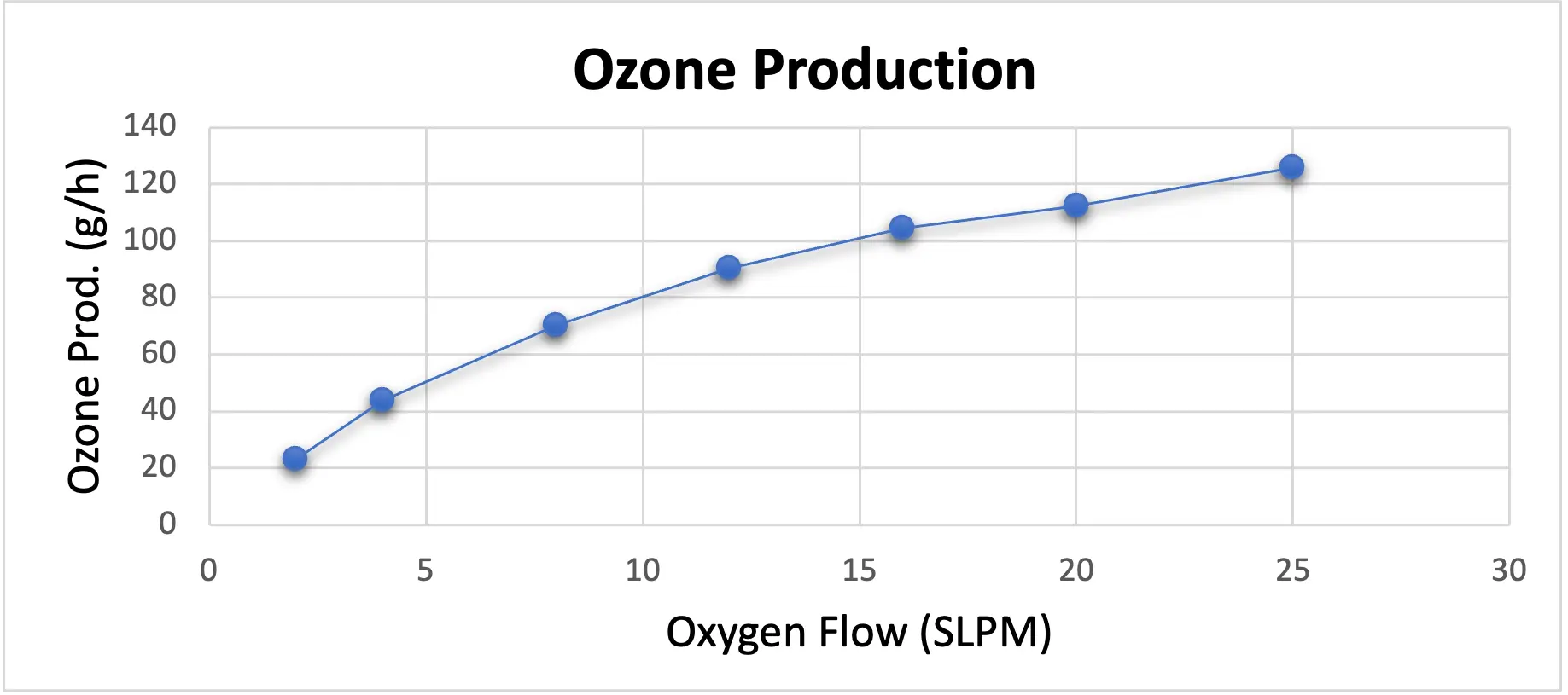 Oxygen Flow (slpm) Ozone Conc. (%w/w) Ozone Prod. (g/h)